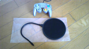 これがポップガードです。マイクに息が当たってボッとなるのを防ぐことが出来ます。