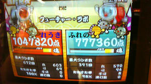 ラウンドワンで太鼓を1クレと、よく分からないゲームに1クレ。2人でプレイすると4曲なんですね、しかもライフより良メンテと来たw