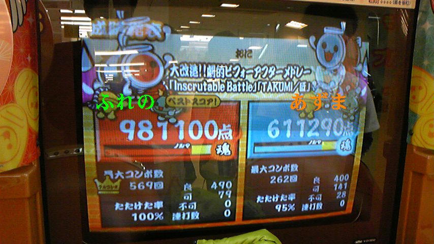 太鼓13の結果、ウ、ウデガァ、イタイー(笑)