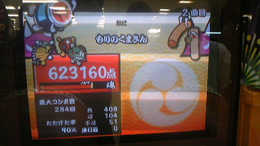 ラストのゲキ連打まではフルコン。達人譜面に分岐してから飛んできた音符は全て見逃し不可ですw