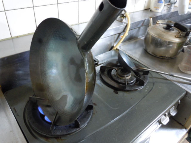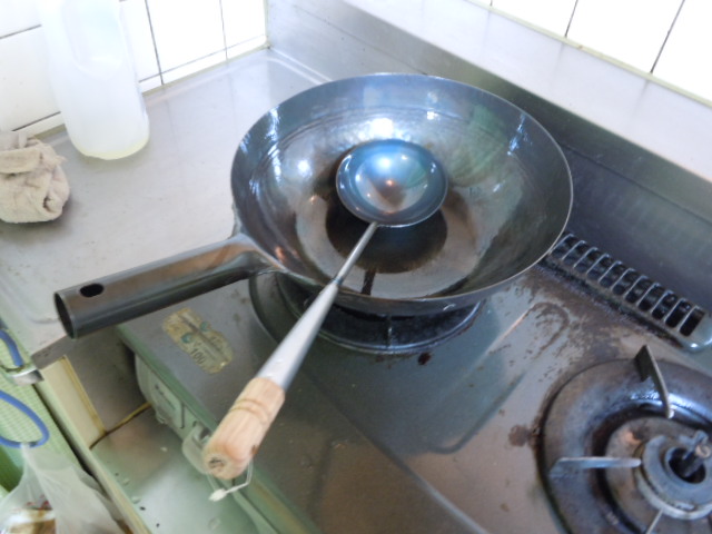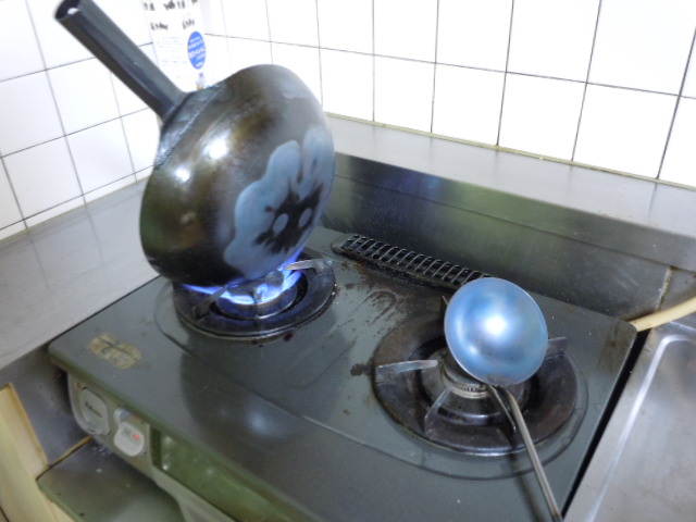 空焼きと言うのは、何を炒めるでもなく購入した中華鍋(お玉)を熱する作業になるのですが。